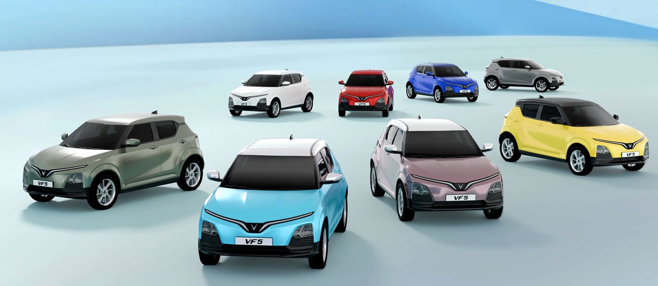 VF 5 Plus chất riêng sáng tạo cùng công nghệ của VinFast: Thiết kế năng động, cứng cáp cùng nhiều lựa chọn màu sắc hợp gu. Nội thất rộng rãi, tối ưu hoá không gian trong xe. 21 tính năng thông minh, 6 tính năng trợ lái hữu ích để trải nghiệm lái xe thêm thoải mái. Dàn xe VF 5 Plus với dải màu đa dạng, gồm 4 màu cơ bản đã có là Xám, Đỏ, Xanh dương, Trắng; và 4 màu nâng cao mới là Vàng, Hồng tím, Xanh dương nhạt và Xanh lá nhạt.